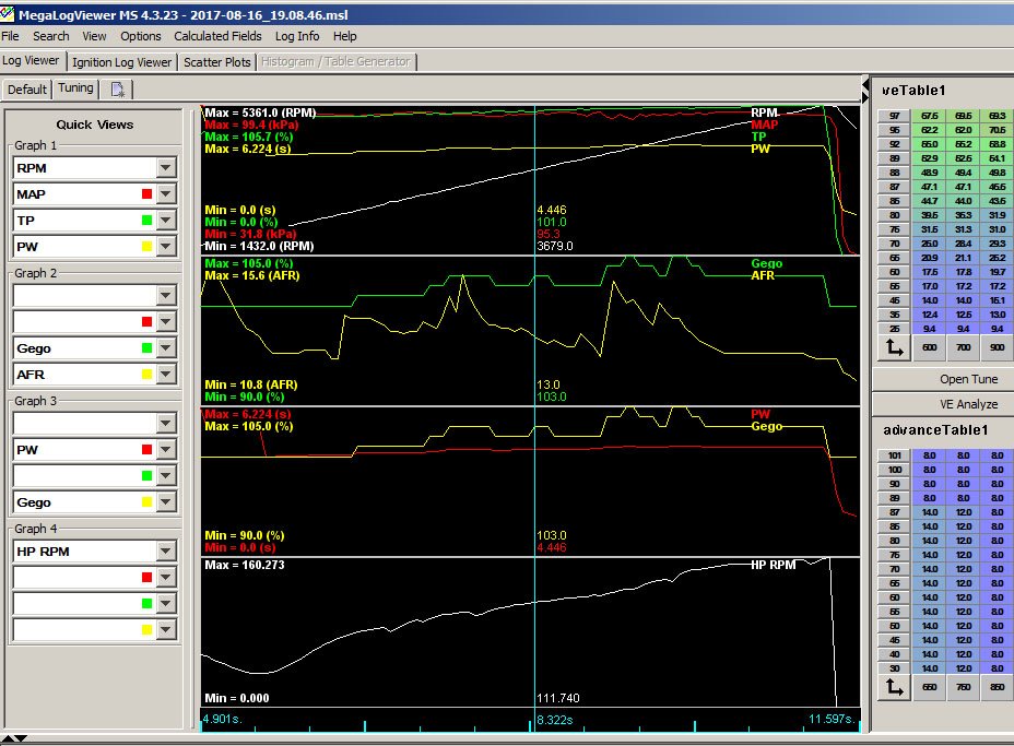 Man braucht dazu die Software Tunerstudio und zusätzlich MegaLog Viewer, beides als recht teure Vollversion,
