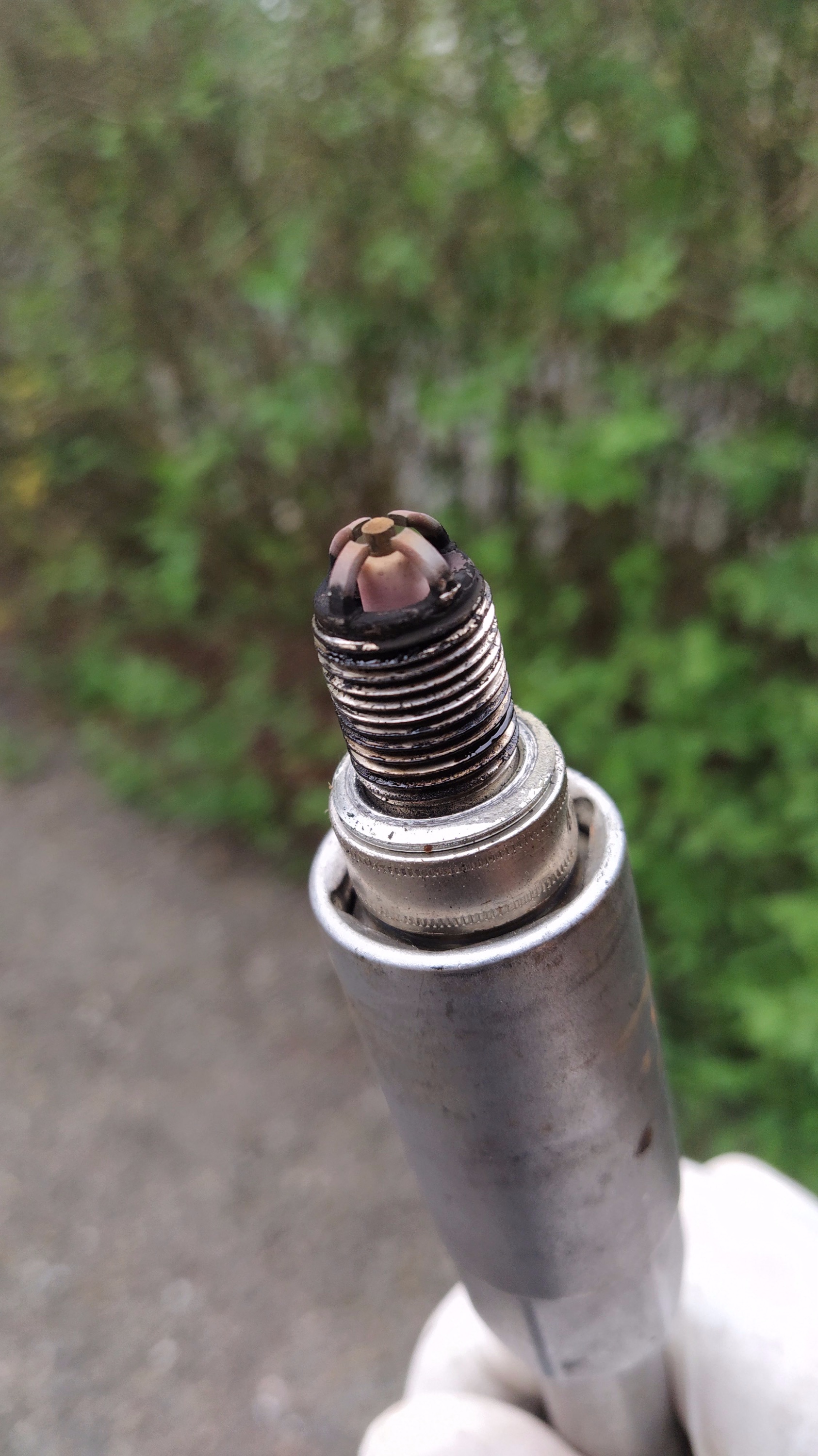 Gestern hatte ich das Gefühl, dass er obenrum (über 4500) etwas zugeschnürt wirkte. Heute habe ich mir mal die Zündkerzen angeschaut, Zylinder 3-6 waren vorbildlich rehbraun. Zylinder 1 und 2 etwas heller und die Elektrode "gelblicher". Was ist eure Meinung dazu?