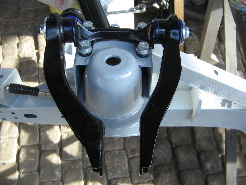 die unteren Querlenkerhalter sind von TR6 mit 2 Bolzen übernommen