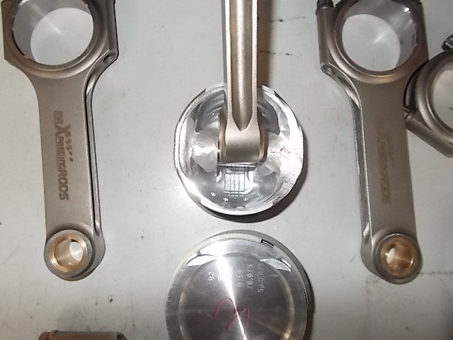 bearbeitete Kolben,so dass das Pleuel in den Kolben passt,Pleuel mit extra angefertigten Pleuelbuchsen.