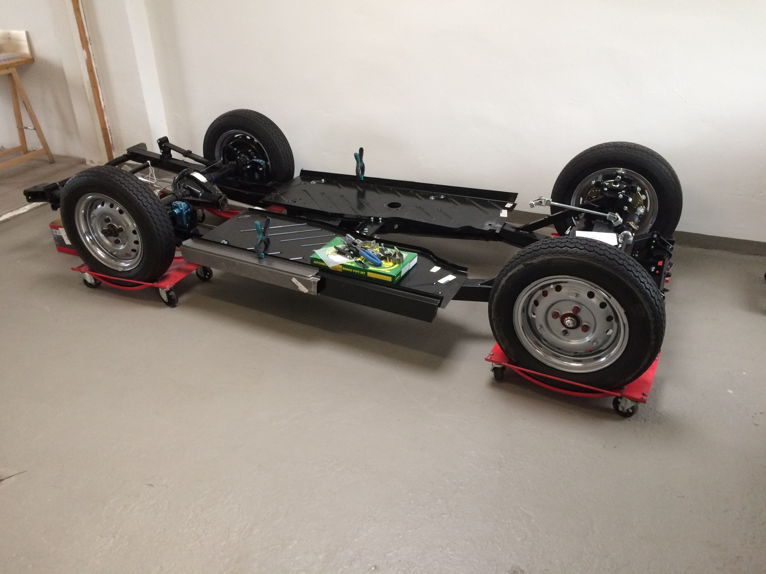 57 Triumph chassis,wie abgebildet, menge neu Teile, rack and pinion, edelstahl big bore auspuff, usw.€2000. SmMouth57@gmail.com